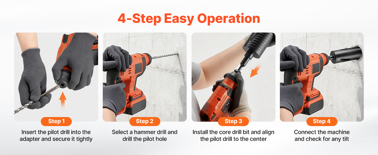 - Precise Positioning: Our diamond dry coring bit includes a pilot drill, eliminating the need for pre-drilling. The sharp tip rapidly penetrates the surface, enabling faster and more accurate positioning for smooth, uninterrupted operation.
