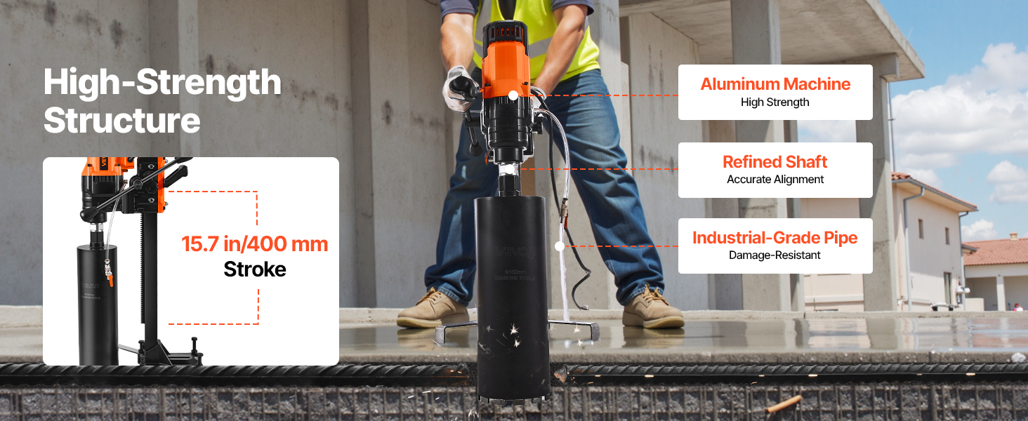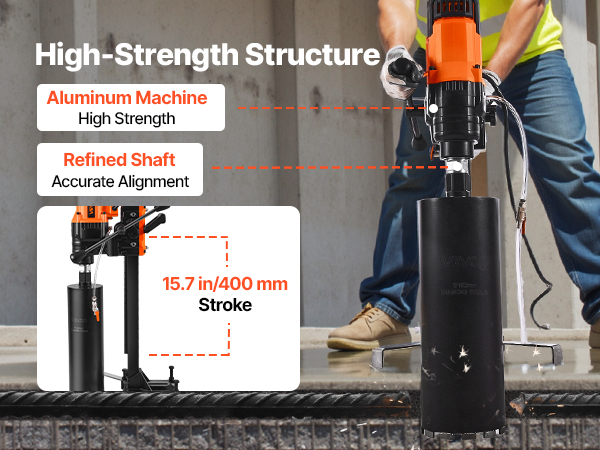 - Built to Last: Crafted with a lightweight yet tough aluminum body, this core drill rig resists wear and tear while minimizing operator fatigue. The reinforced PVC water hose is crack-resistant, and the steel output shaft ensures consistent accuracy.