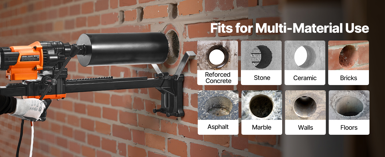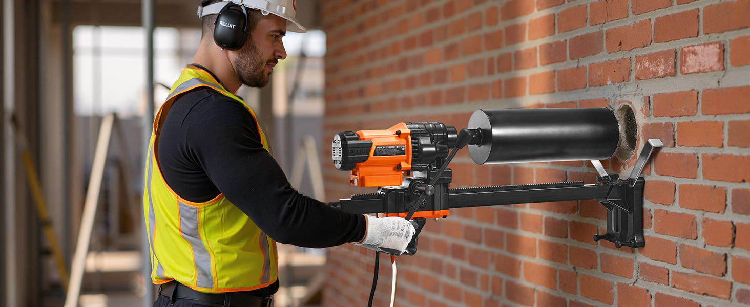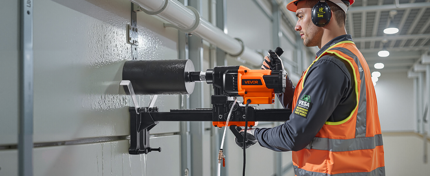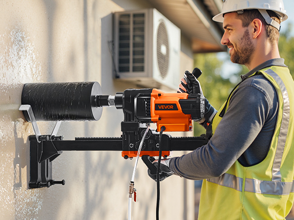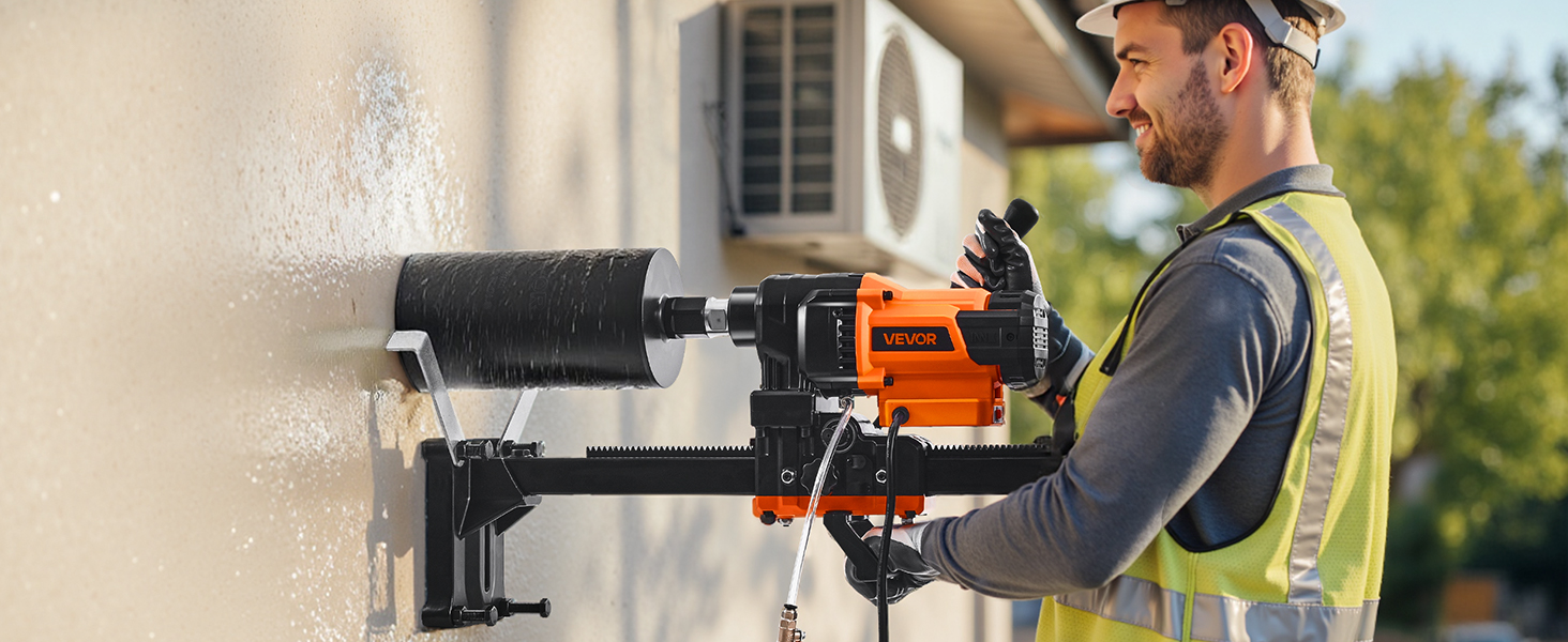 Full disclosure- I have never used a core drill before. I needed to drill a 6” wide hole in a 10” thick concrete wall. All of the rentals (Home Depot, etc) were missing pieces of the mount/drill/you name it, and they were charging $200+ for a single day’s use. I found this drill and purchased a SALI 6” diamond tipped core bit. The instructions were somewhat lacking but eventually I got it all set up. I ditched the screws that “stabilize” the base and used 4x 1/4” diameter 4” long tapcon screws to anchor the base to my vertical wall. This thing is LOUD and honestly it kind of made me nervous. Use eye/ear/hand protection 100% of the time as well as a continuous(ish) stream of water to keep the tip wet/cool, it’s absolutely necessary. It took about an hour and a half to core through the 10” wall. Removing the concrete core piece from the core bit was INCREDIBLY difficult. I ended up having to buy a SDS plus chisel to completely fracture the piece of concrete for hole #2. Once I got the bit empty of the concrete plug I moved onto hole #2. This 2nd hole was unfortunately 9.5’ high and what turned out to be 14” thick. It was not a good day when I figured out it was much thicker than the first wall. After an hour and a half (and throwing my breaker a few times), I made it through the wall. The drill performed 100% the way I hoped it would and it was immediately thrown in the trash can after. This was honestly one of the most dangerous things I’ve ever done and I’ll never do it again. But as for the product- 10/10. Thank you for not making something that hurt me. Recommendations from my experience: – Mount the base to the wall using 1/4” tapcon screws at least 4” long – Use water (I used a generic spray bottle) throughout the drilling – Be prepared to spend an hour or more trying to remove the concrete plug if you have to drill more than one hole – Hire someone to do all of this because it’s incredibly dangerous