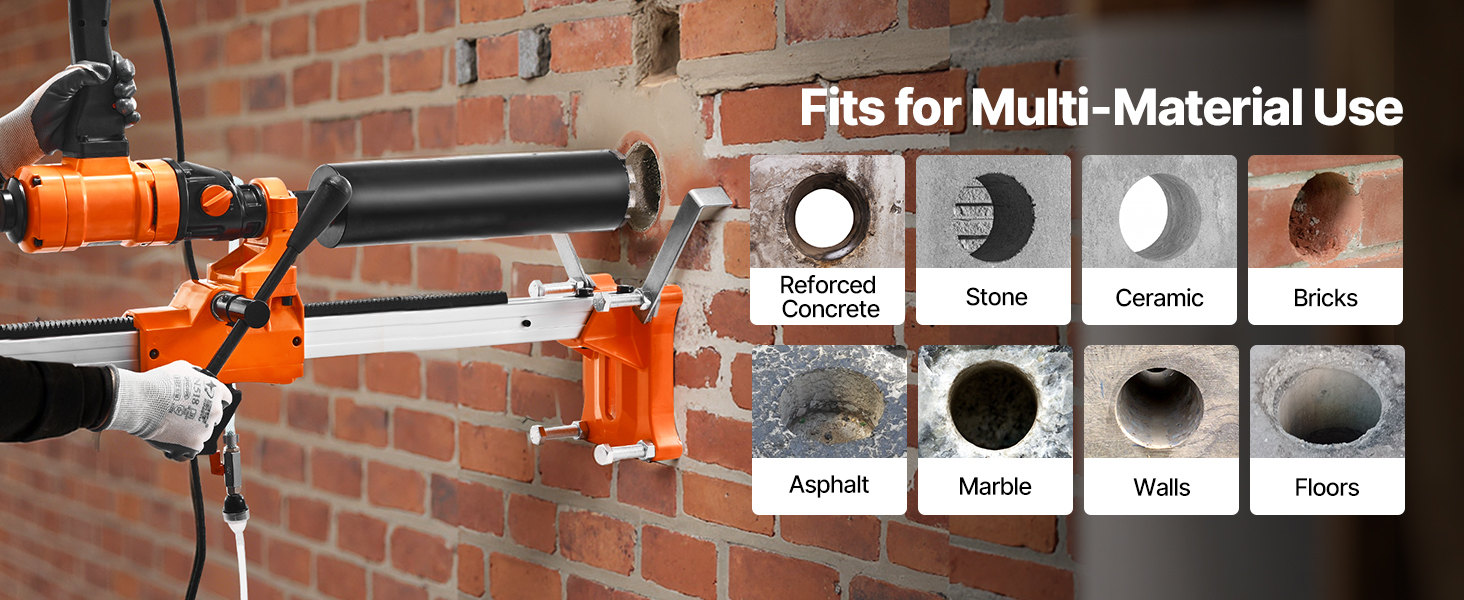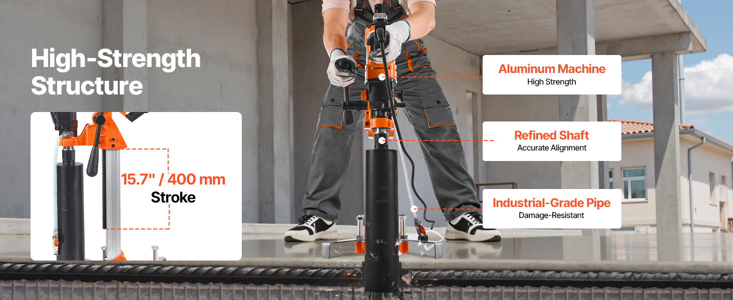 - Built to Last: Crafted with a lightweight yet tough aluminum body, this core drill rig resists wear and tear while minimizing operator fatigue. The reinforced PVC water hose is crack-resistant, and the steel output shaft ensures consistent accuracy.