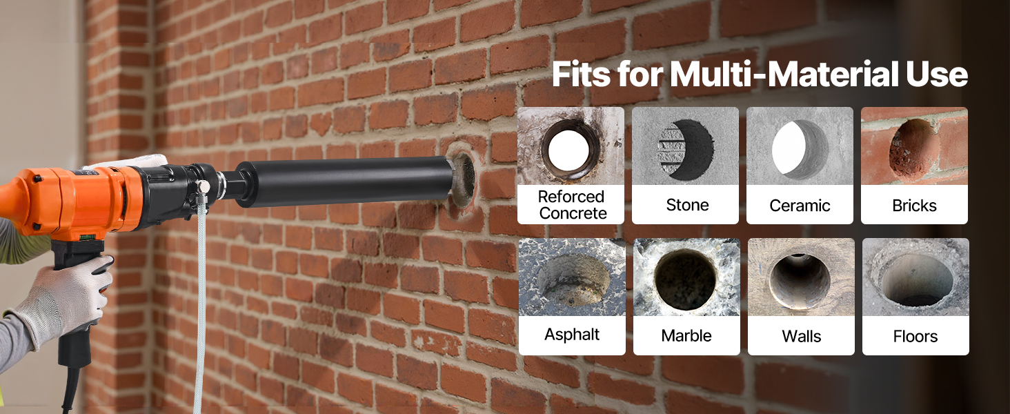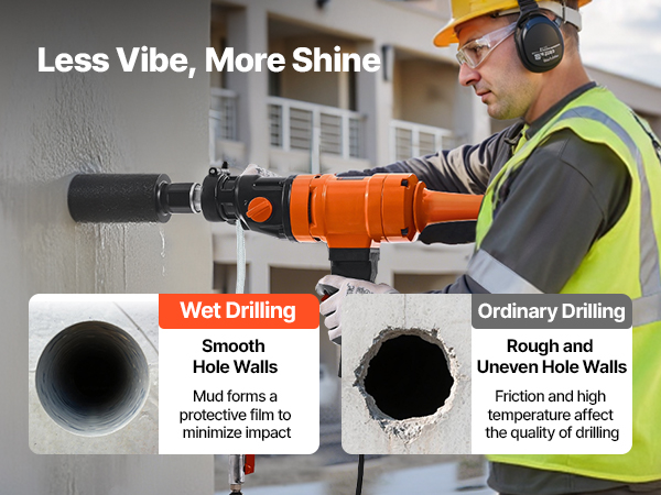 - Superior Hole Quality: Our diamond core drilling machine features both wet and dry drilling modes. The wet drilling option flushes debris and cools the bit with water, reducing dust and enhancing hole smoothness—ideal for indoor renovation applications.