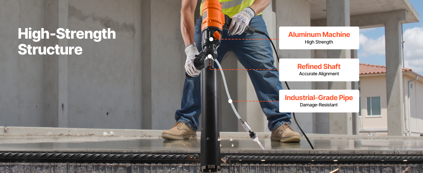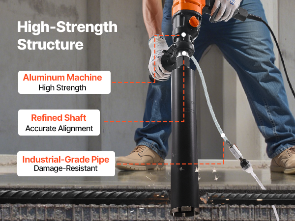 - Built to Last: Crafted with a lightweight yet tough aluminum body, this core drill rig resists wear and tear while minimizing operator fatigue. The reinforced PVC water hose is crack-resistant, and the steel output shaft ensures consistent accuracy.