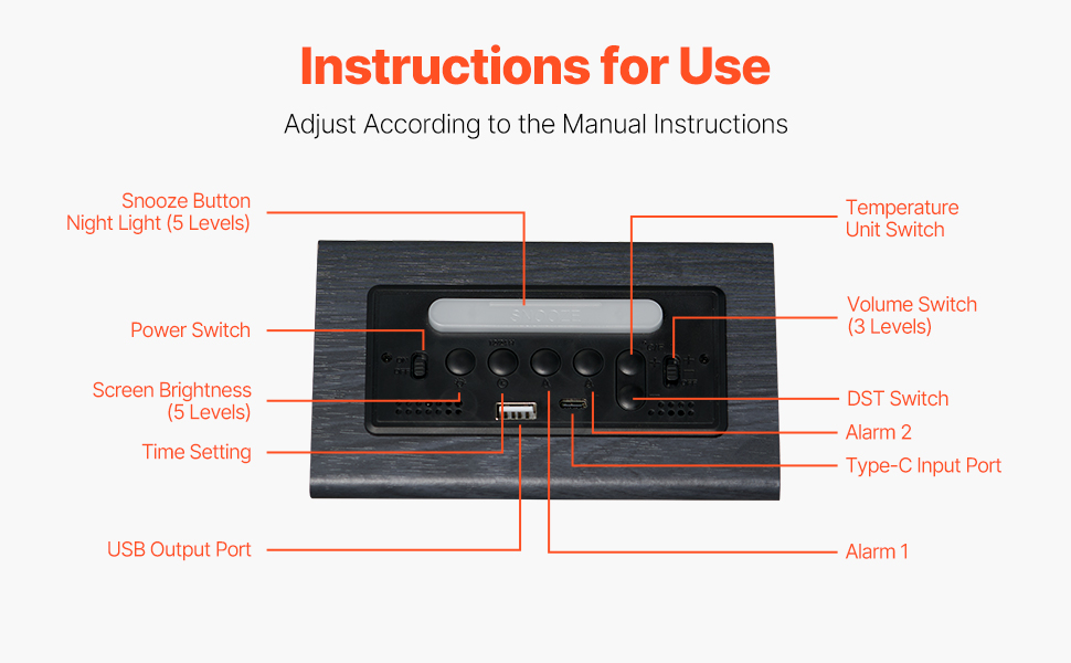 - Simple & Easy to Use: The buttons are laid out logically, making it easy to operate. Need to set your alarm, adjust the night light, or switch between time and temperature? You can do it all with just a few presses—no complicated instructions needed!