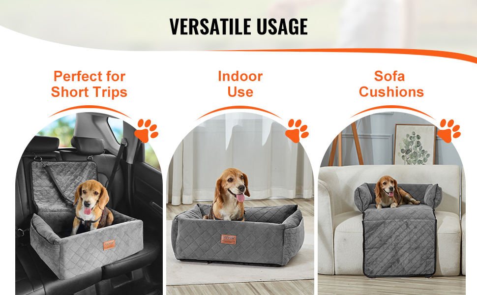 - Versatile Use: Our dog car bed is available in various sizes and colors, accommodating pets up to 40 lbs. It is suitable for all types of vehicles, can be used indoors as a cozy pet sofa, and is portable for outdoor use.