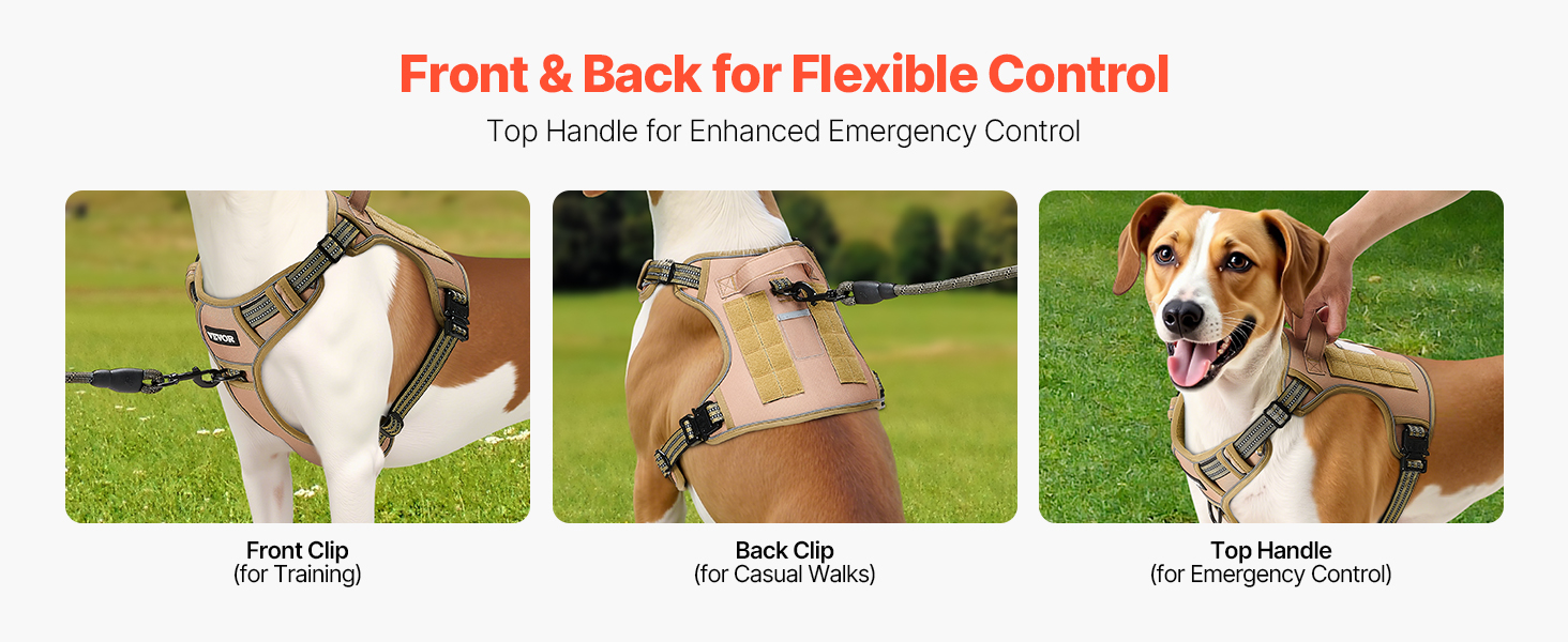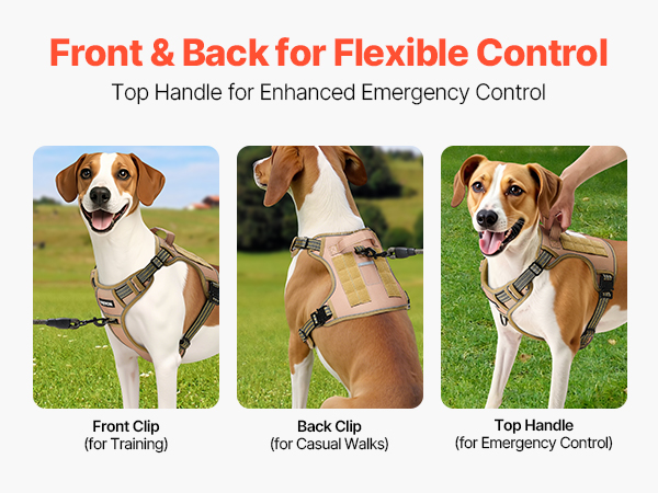 The harness for dogs provides front and back leash attachment options for flexible control. The top handle design allows for quick emergency control during outdoor activities. It’s comfortable to hold, so you can enjoy walks and training sessions with your dog.