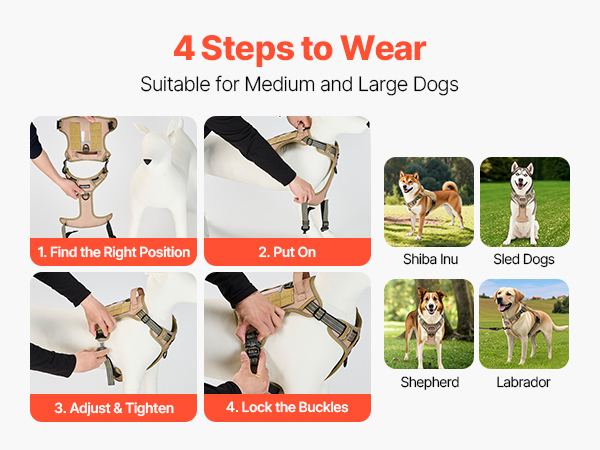 - Easy to Wear: This large dog harness features 4 simple size adjusters on the neck and chest for an ideal fit, suitable for medium to large dog breeds.