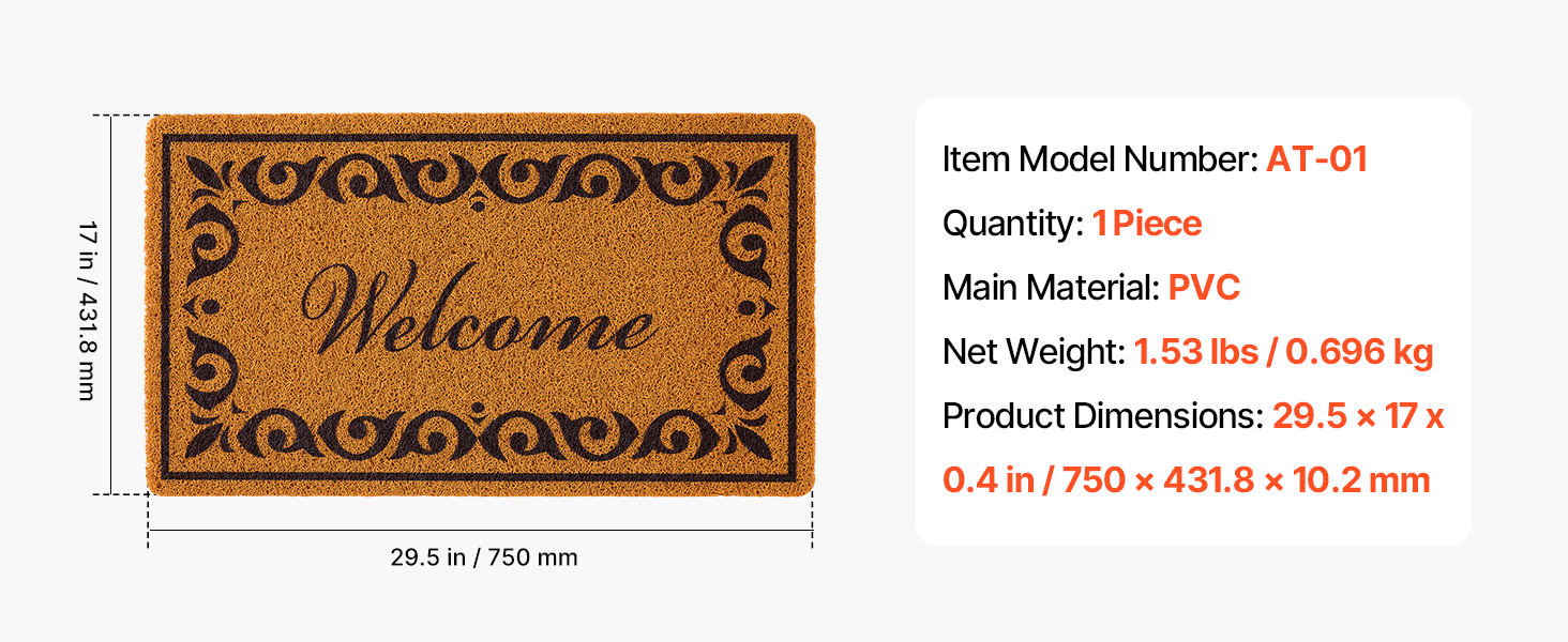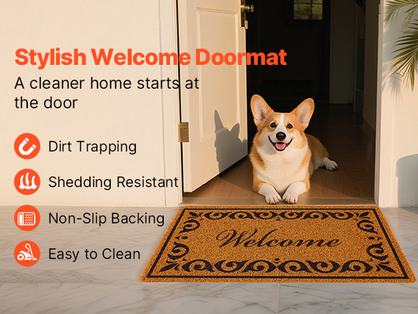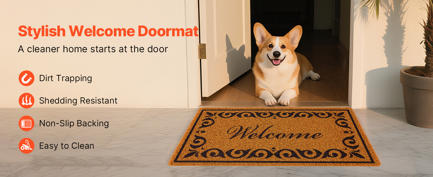 Crafted from durable faux coir, this welcome doormat effectively traps dust and dirt to keep your floors clean. The non-slip PVC backing keeps it firmly in place without slipping or shifting. Waterproof, wear-resistant, and pet-friendly — built to withstand daily use and pet claws.