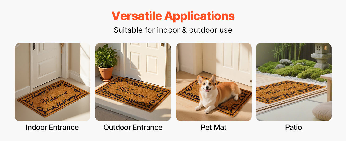 - Wide Applications: This welcome doormat for outdoor entrance is easy to clean — simply shake it out, sweep, or vacuum as needed. Ideal for various indoor and outdoor spaces including entryways, front doors, patios, laundry rooms, kitchens, garages, and pet entrances