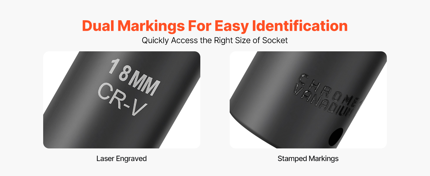 - Clear Size Markings: The wear-resistant size markings on each impact driver socket are meticulously laser-etched and rolled, ensuring clear and precise identification even in low light conditions