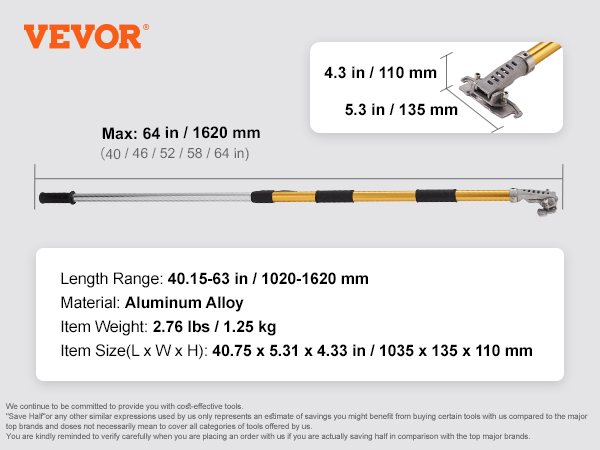 - Variable Length Options: Length Range: 40''-64''. Our flat box handle is ideal for painting at any height. No unattended areas.