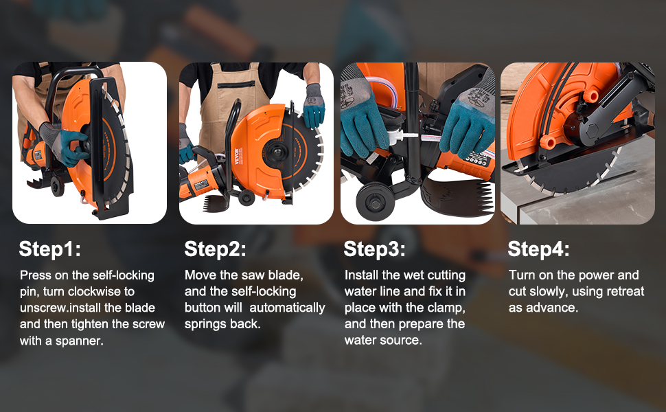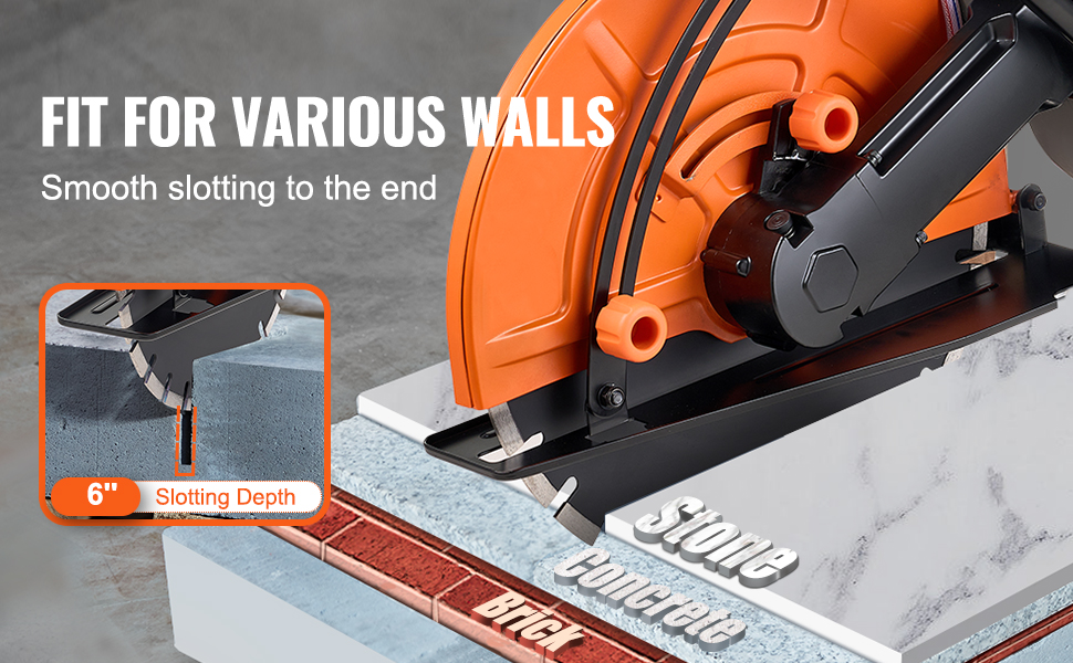 - Peace of Mind: The double switch helps avoid accidental activation of the concrete saw when it’s not in use, reducing the risk of injury. The machine also features slow start, overload protection, and built-in GFCI design, all of which ensure smoother and safer operation, as well as a longer lifespan.