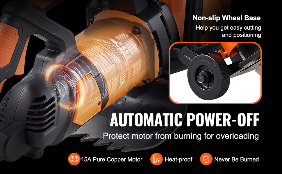 Our electric cement saw has a safety feature that prevents the motor from overheated due to excessive power. The pure copper motor can withstand high temperatures, ensuring a longer service life.