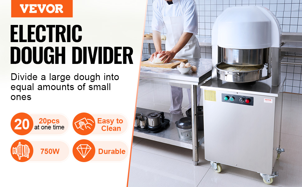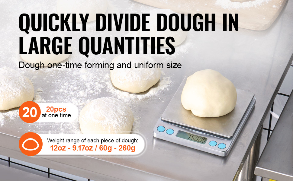 - 20pcs Equal: This electric dough divider can divide a large dough into 20 equal portions. Each portion ranges from 60 to 260 grams (2.12 to 9.17 oz). It features fast, non-stick, efficient dough dividing, avoiding the problem of unequal size caused by manual segmentation.