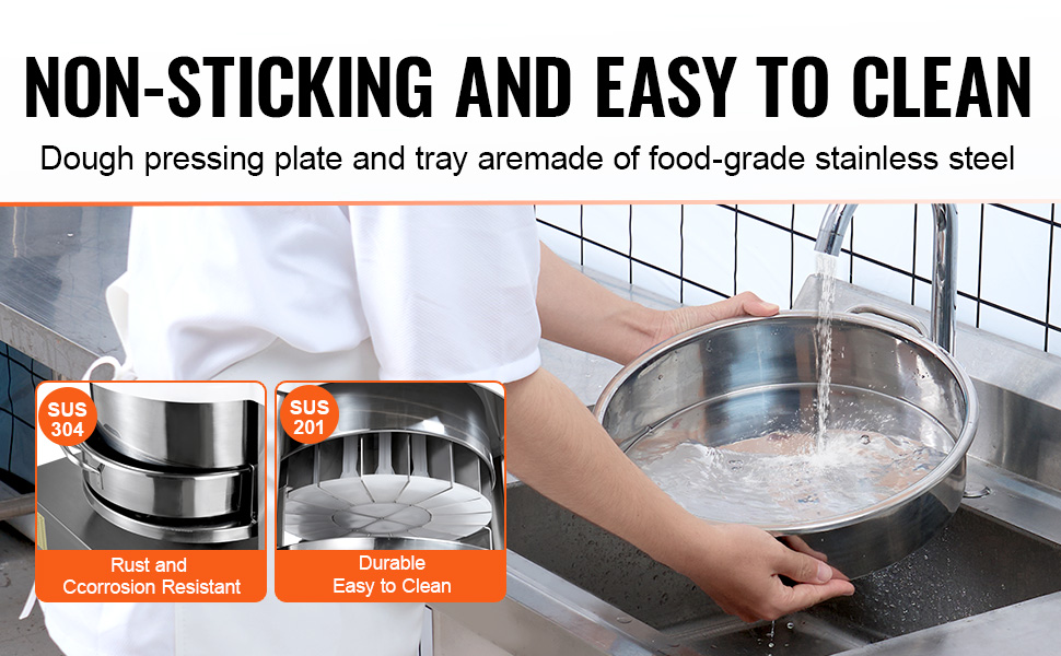 Constructed from robust SUS304 stainless steel, this dough divider is resistant to corrosion and wear. All food-contact parts are made of food-grade stainless steel, ensuring security and durability.