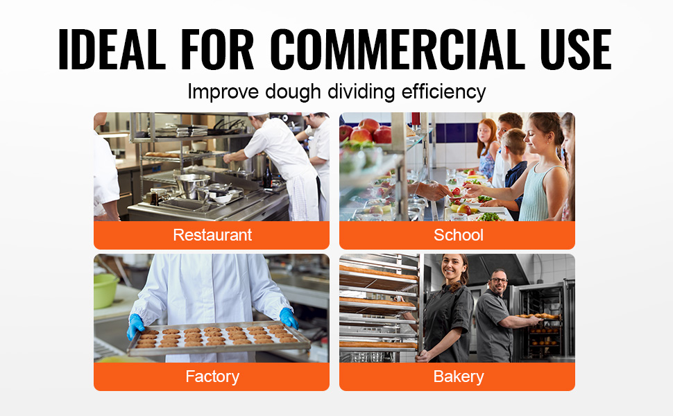 - Wide Application: This dough divider is ideal for producing pastries, pizzas, cookies, burgers, bread, and more. It is suitable for use in restaurants, schools, factories, bakeries, and other high-volume food production environments.