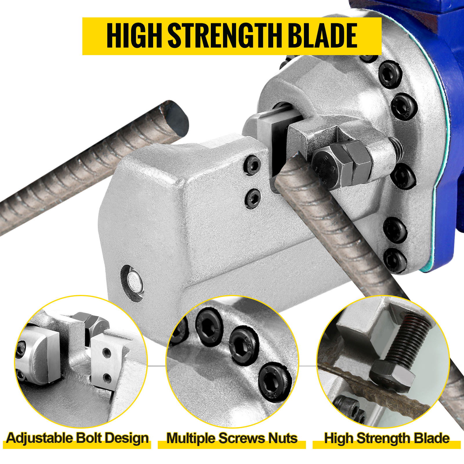 - Adjustable Bolt Design: The portable rebar cutter features an adjustable bolt that delivers manual-like precision and ensures cutting stability when processing rebar of varying diameters. Simply position the steel bar in the cutting slot and adjust the bolt to secure it. Once set, all subsequent cuts will be uniform, enabling repeatable, accurate cuts.
