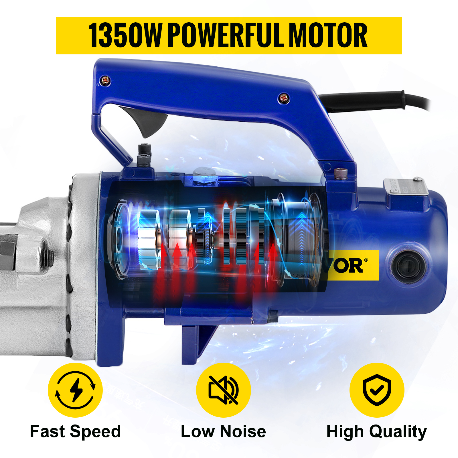 The rebar cutter electric features a 100% pure copper motor for low noise operation and saving energy for a long time. Moreover, it is powerful enough to get the rebar cutting job done with way less hassle.