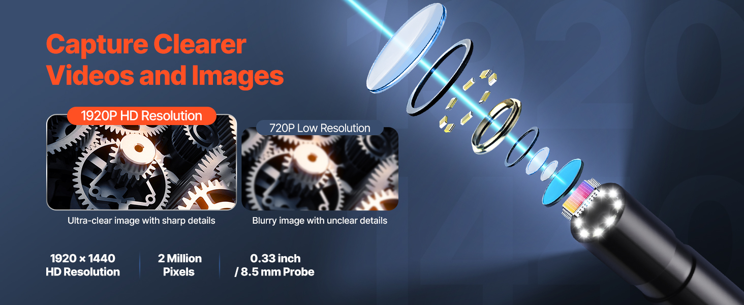 - High Definition Display: Our 2.0 MP industrial inspection camera delivers an enhanced experience with clear, high-definition videos and images at a 1920 x 1440 resolution, providing sharp and detailed visuals. The images can be zoomed in by 1x, 1.5x, or 2x, allowing you to better view interior details with greater precision.