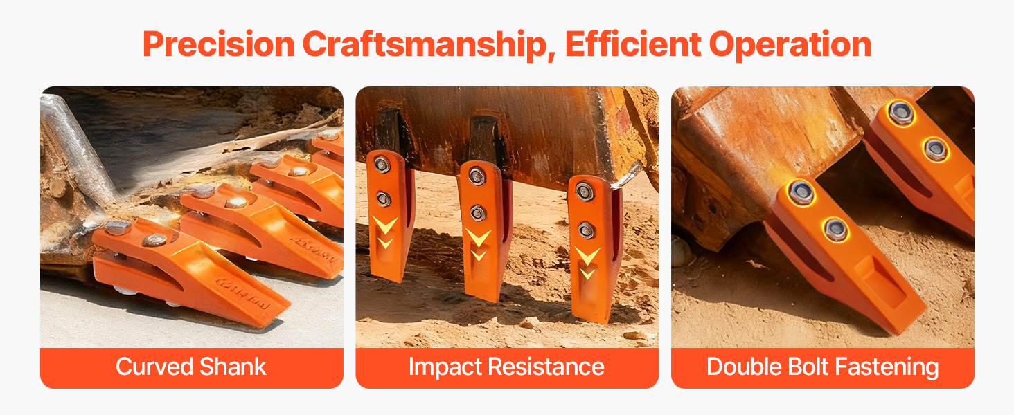 • Easy Installation: Each bucket tooth comes with bolts and nuts. Align the tooth with the bucket edge, match the holes, and tighten the two bolts to secure it in place.