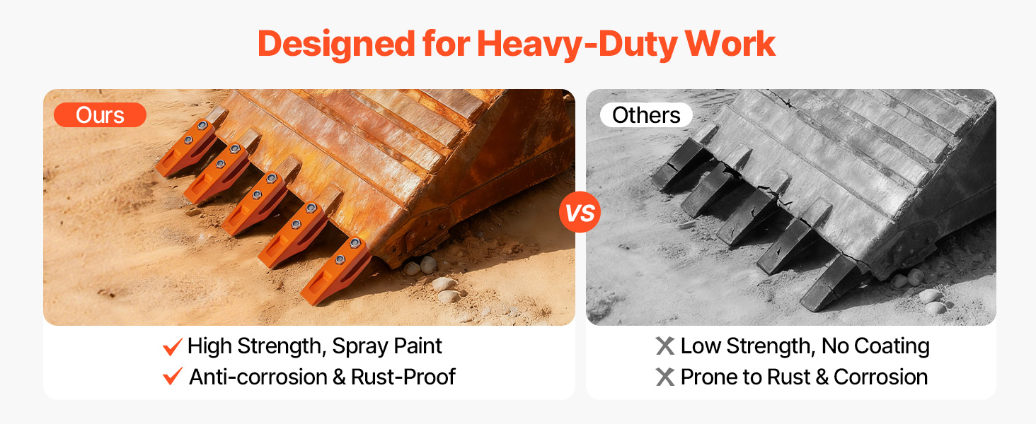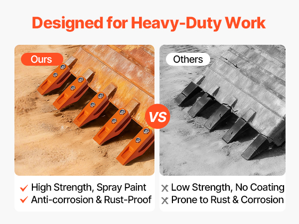 Crafted from tough Q235 alloy steel, the tractor bucket teeth offer superior toughness compared to standard carbon steel. Anti-rust powder coating protects against corrosion and significantly extends the life of each tooth.