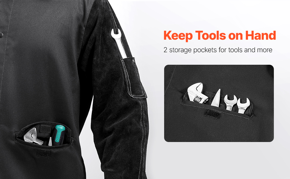 Equipped with 2 pockets, our heat-resistant jacket provides storage space for your essential tools and personal items, ensuring they are safe and easily accessible, keeping you ready for the task at hand.