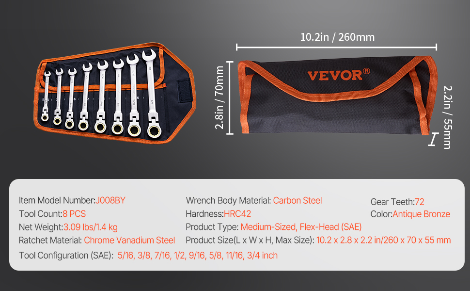 - Easy to Carry: The flex head wrench set includes a storage bag designed to keep all wrenches organized and portable, enabling convenient transport to multiple work sites or varied applications.