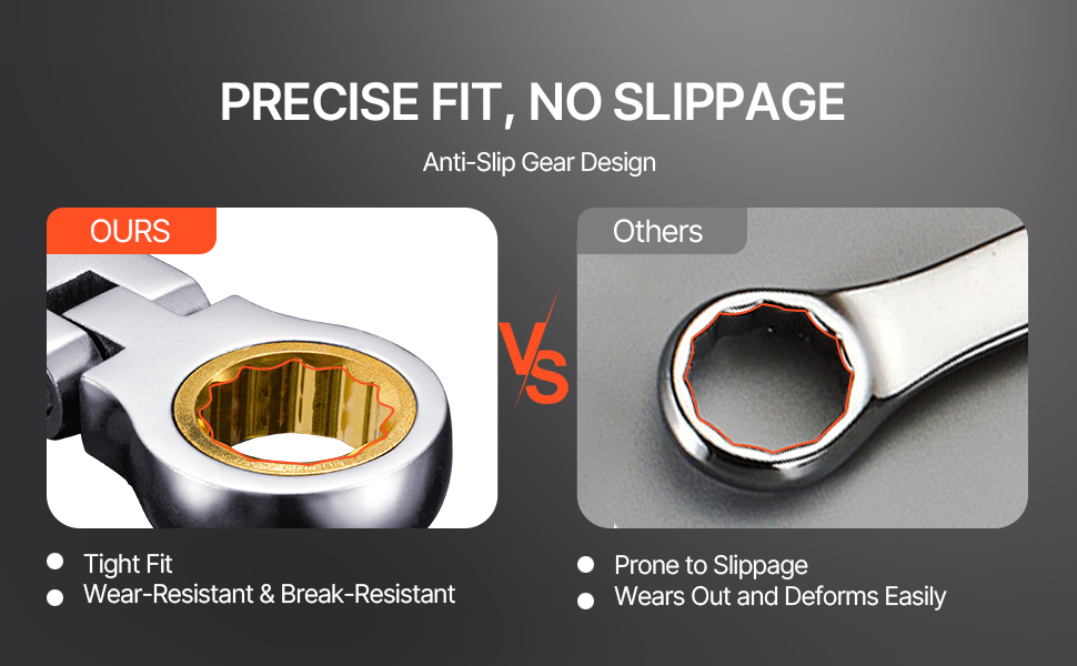 The slip-resistant gear design of our combination wrench set reduces slippage and helps save effort, making your tasks more efficient.