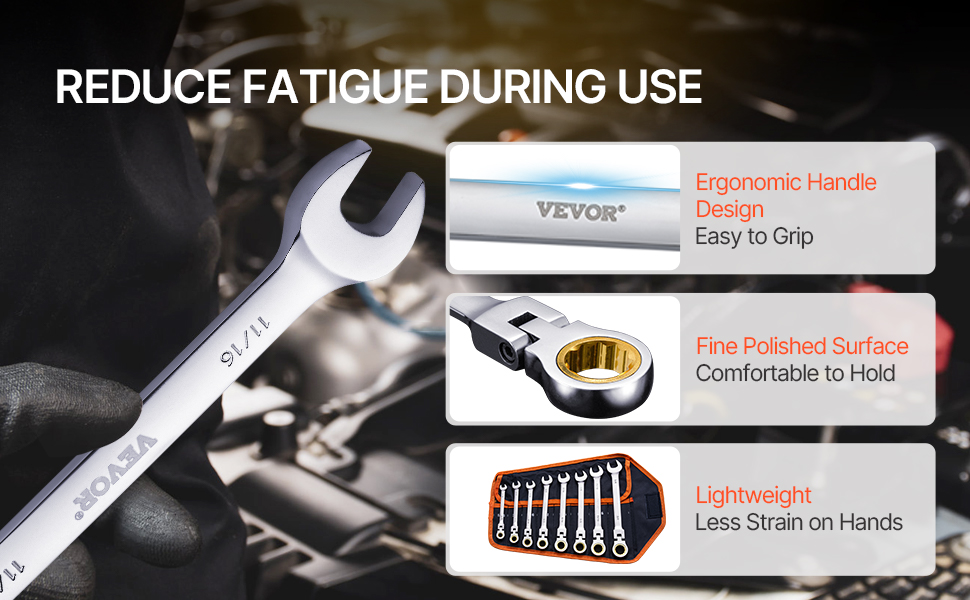 Our flex head ratcheting wrench set features an ergonomic design, providing a comfortable grip for your easier operation.
