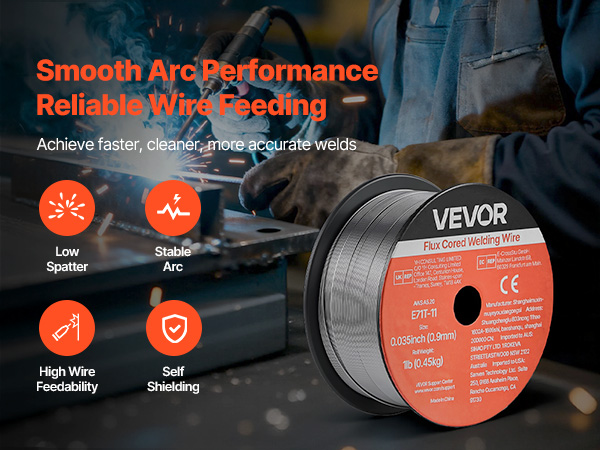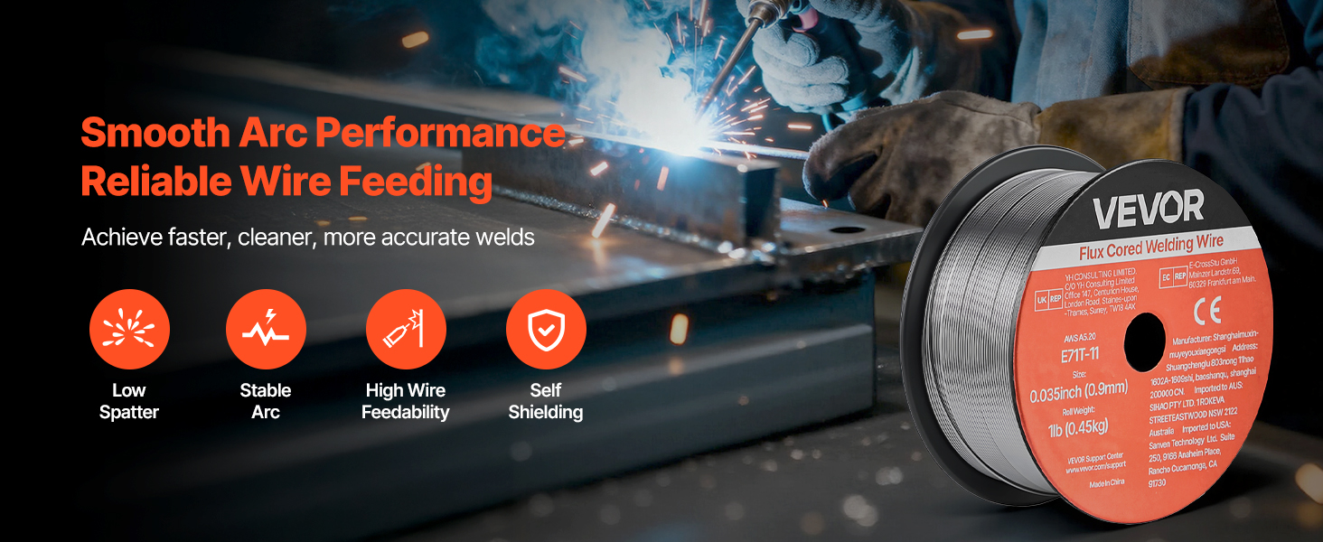 - High Quality & Reliable Welds: The VEVOR 0.035" 1 lbs E71T-11 flux core MIG welding wire delivers stable arc performance with minimal spatter, producing smooth, clean weld beads. Ideal for thin-gauge carbon steel plates and supports multi-pass welding.