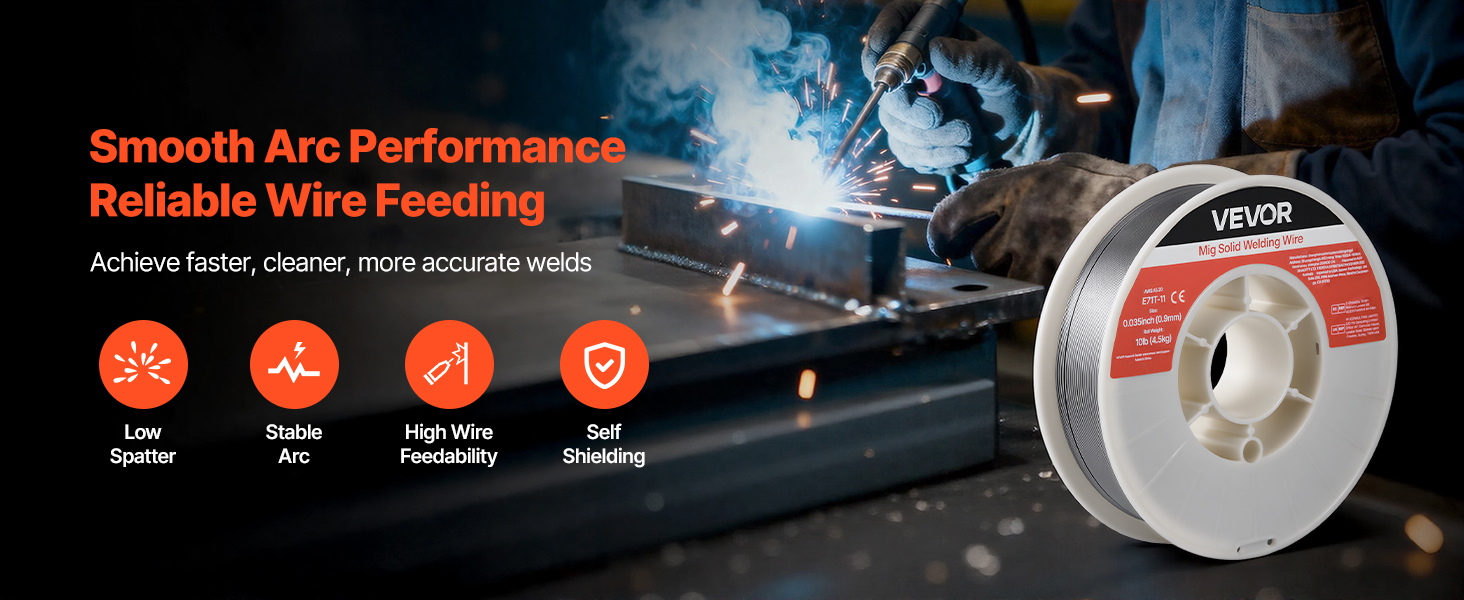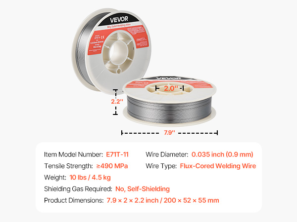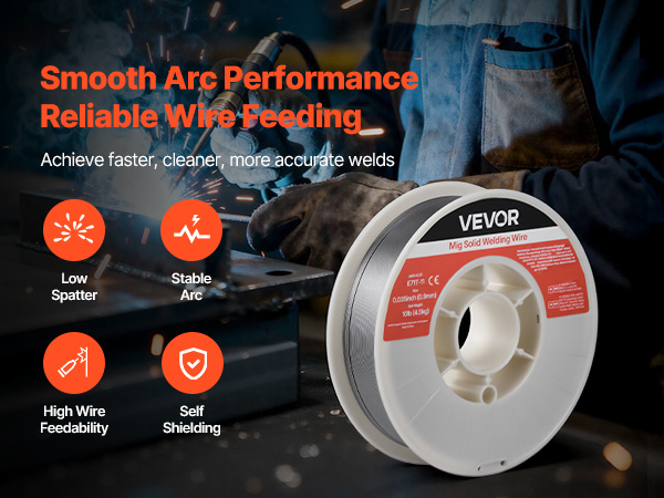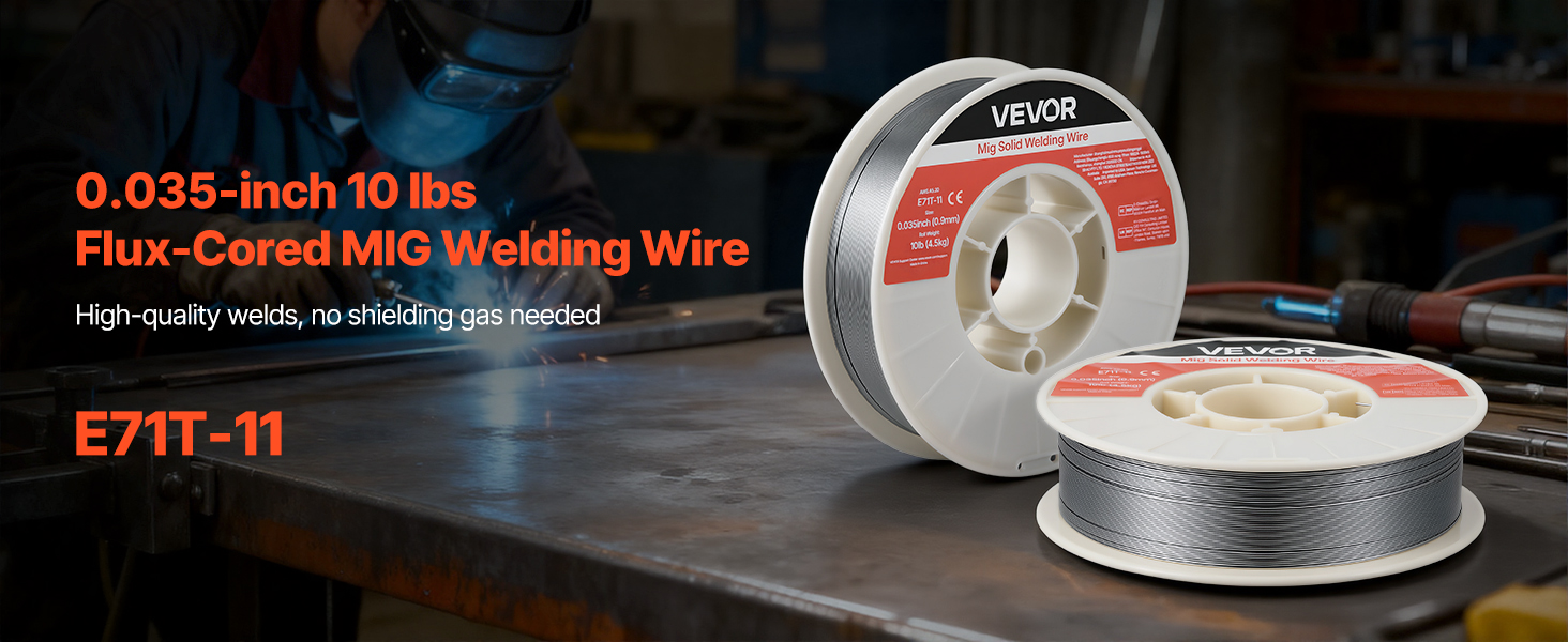 - High Quality & Reliable Welds: The VEVOR 0.035" 10 lbs E71T-11 flux core MIG welding wire delivers stable arc performance with minimal spatter for smooth, clean weld beads. Ideal for thin-gauge carbon steel plates and supports multi-pass welding.