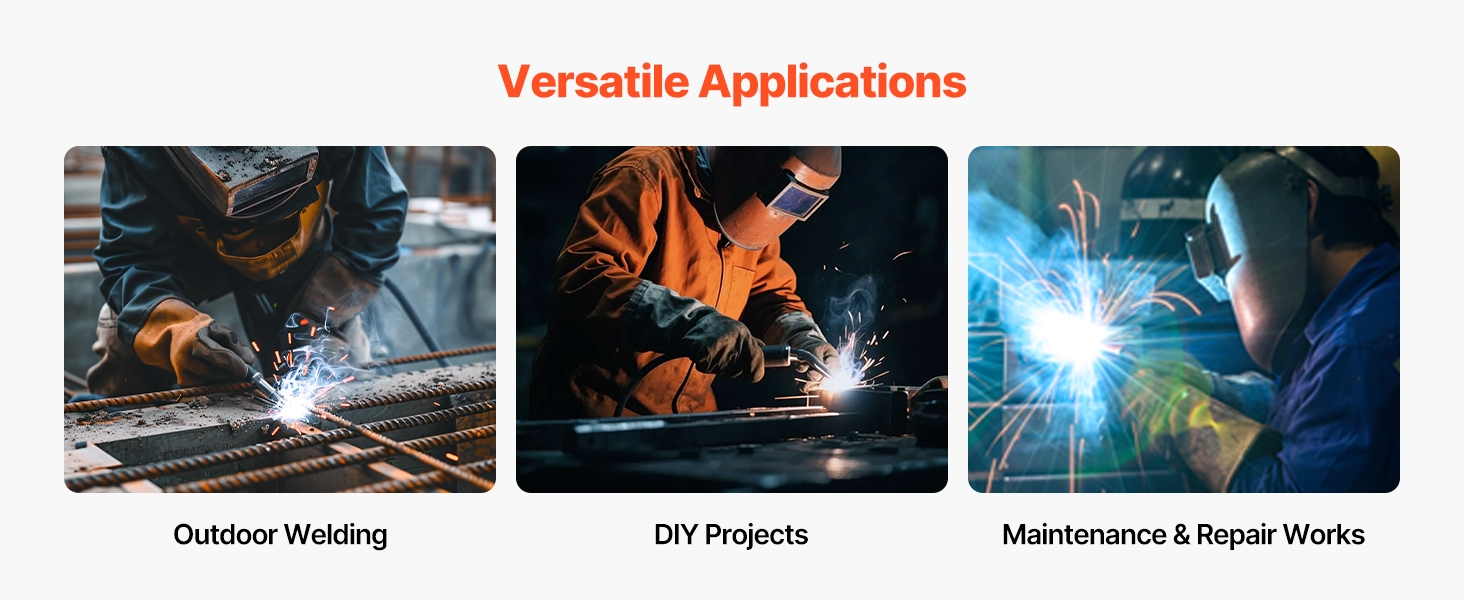 No need for shielding gas, you won’t have to worry about wind disrupting your welds during outdoor work—ideal for construction sites, metal fabrication, maintenance jobs, and DIY welding projects.