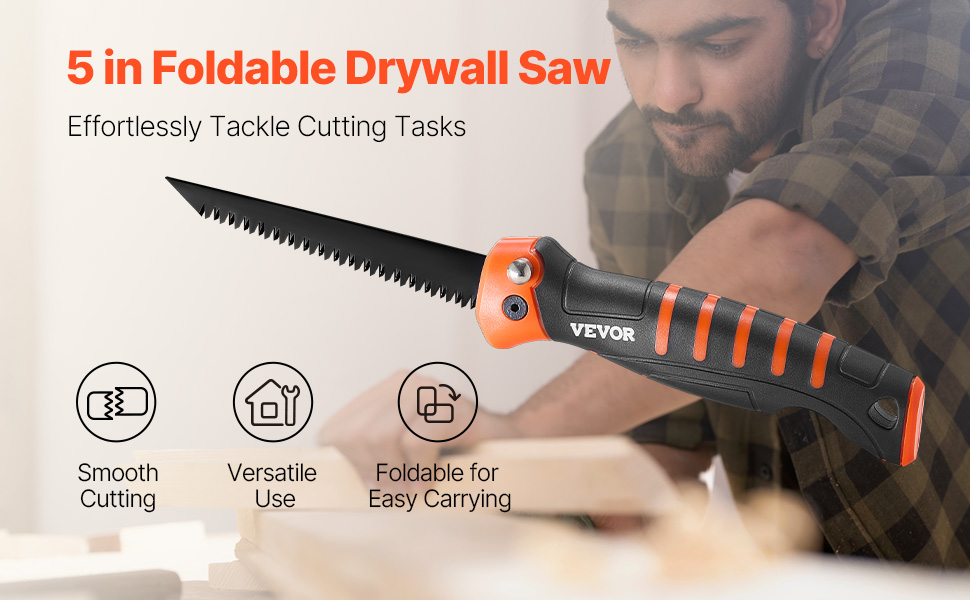 - Foldable & Portable: Simply press a button to fold the drywall saw, making it compact for easy storage and portability. Whether in a toolbox, backpack, or hanging from your belt, it takes up minimal space.