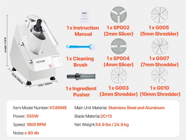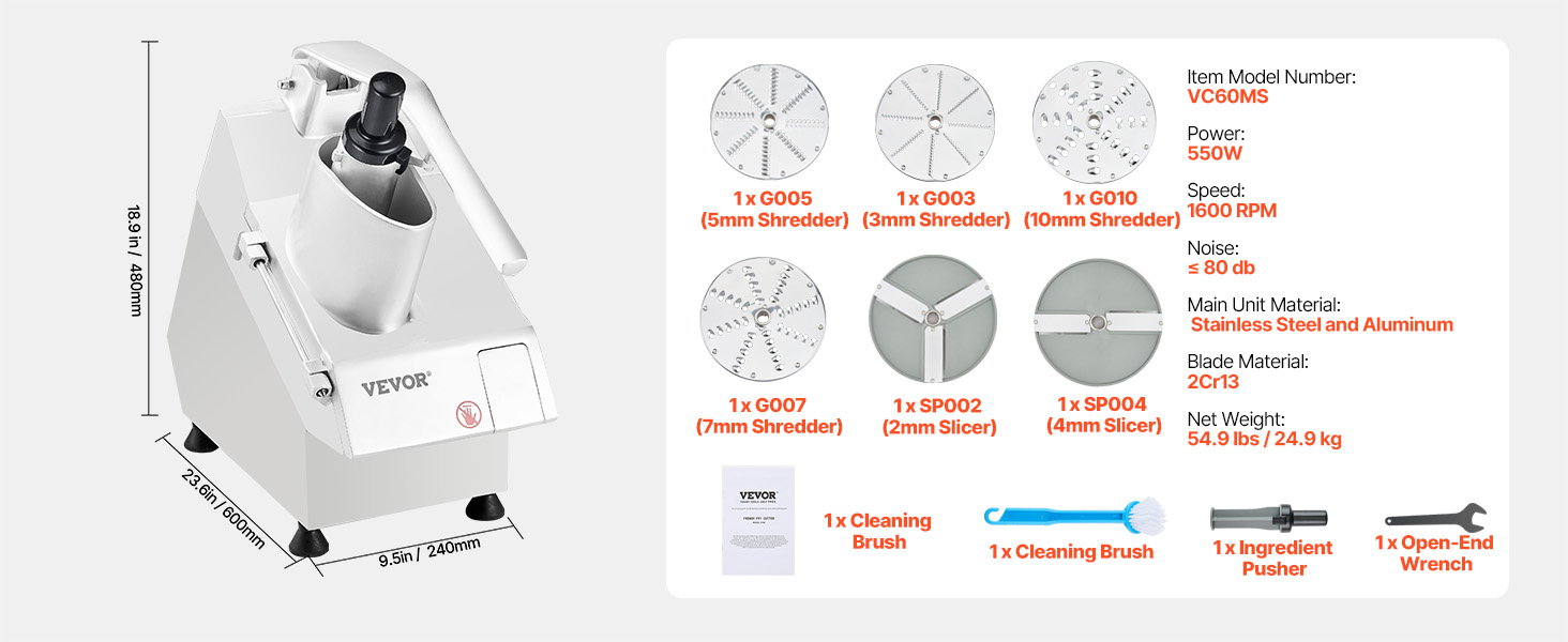 I’m very impressed with this VEVOR vegetable processor. It’s built with sturdy stainless steel, works quietly, and slices or shreds everything perfectly. The multiple blade options give me flexibility for different recipes, and it’s fast and safe to use. A must-have for anyone who wants to save time in the kitchen!