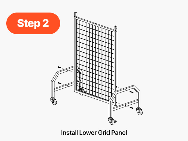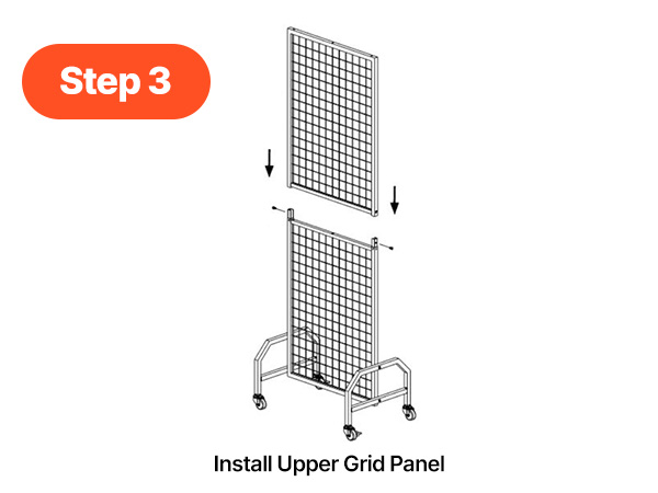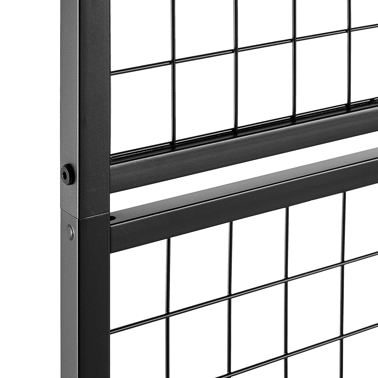 Black grid panel connects securely with provided screws.