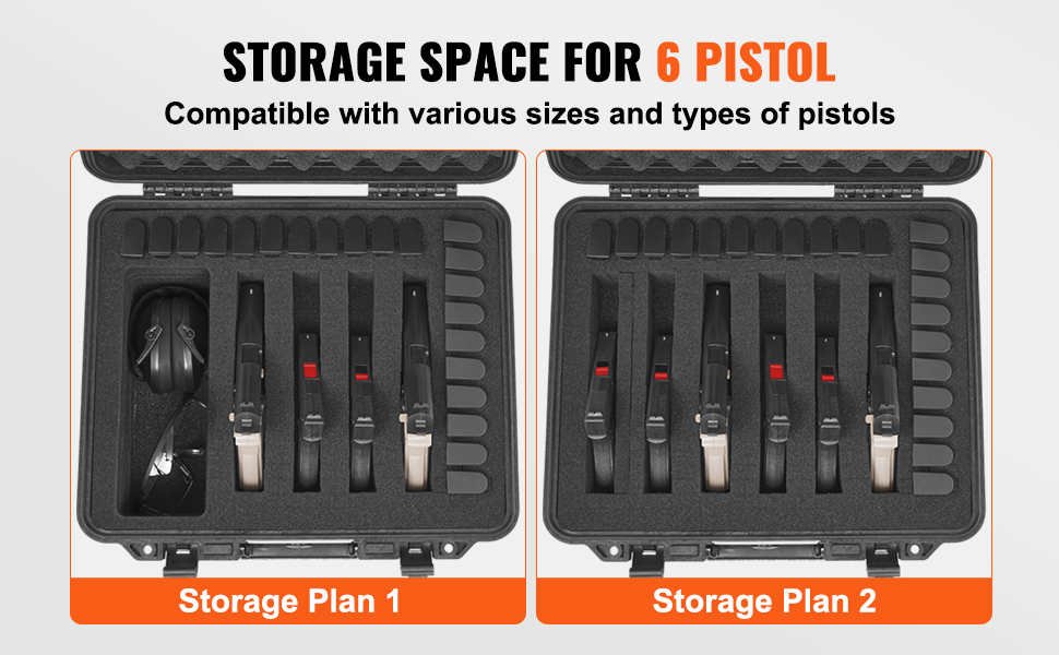 The pistol case accommodates 6 pistol, suitable for most handguns. Its compact internal structure saves valuable space while ensuring your firearm remains in its original condition, making it easier and more convenient to carry and use.