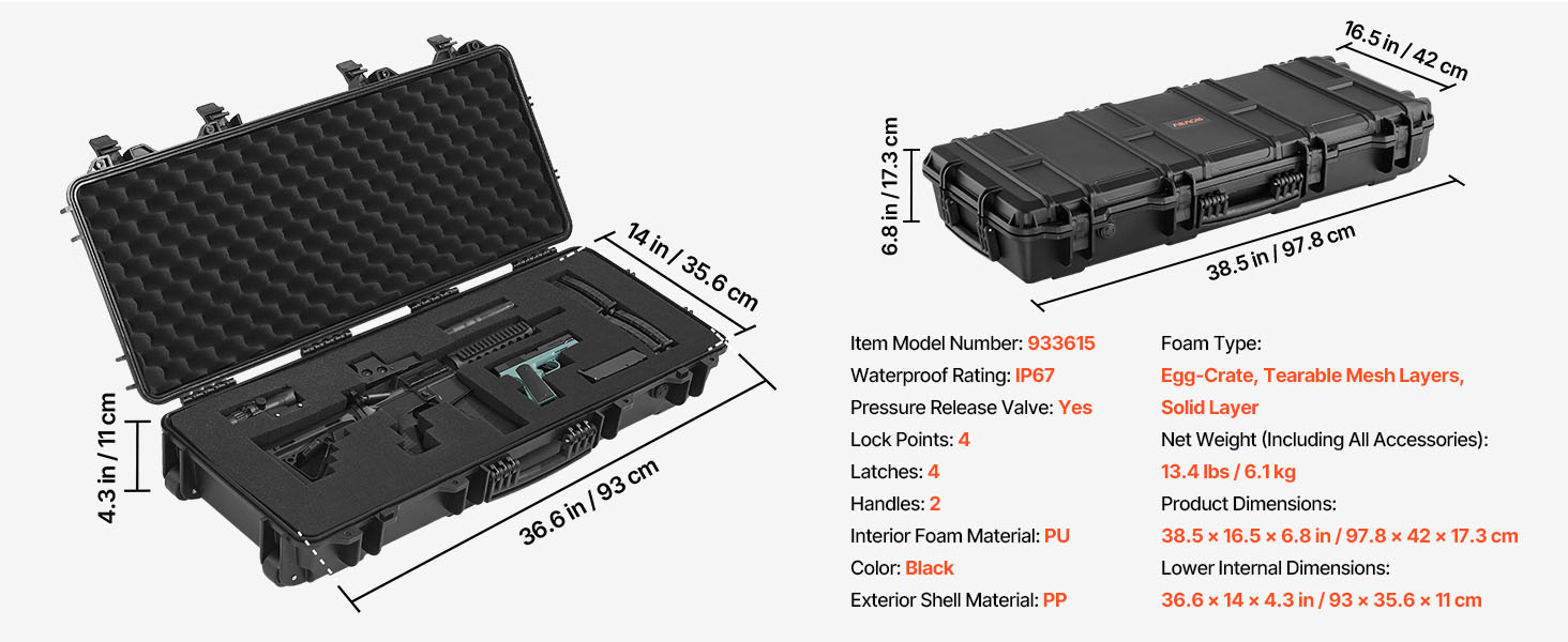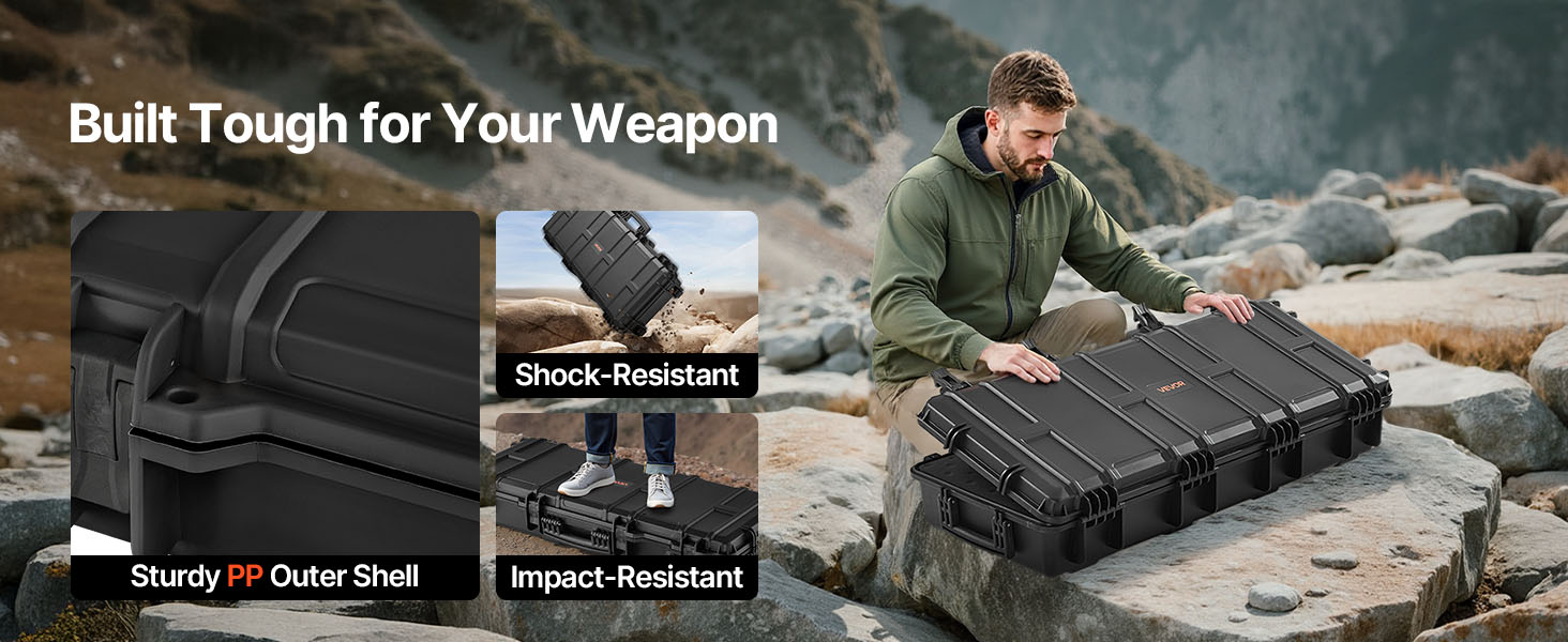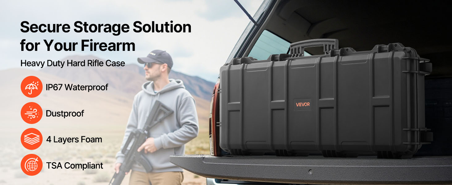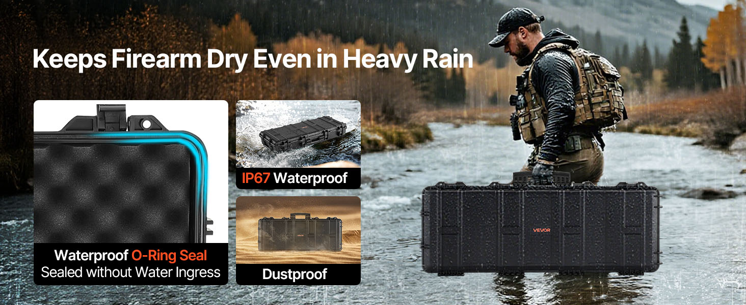 - IP67 Waterproof & Dustproof: This hard rifle case features a rugged, impact-resistant exterior with IP67 waterproof and dustproof protection, ensuring a fully sealed design that keeps water out. It safeguards your firearms against harsh weather conditions.