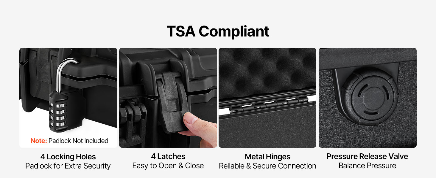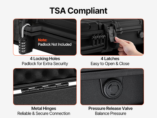 - TSA Compliant: Meets TSA standards, this rifle case is suitable for travel on airplanes, trains, and other forms of transport. Equipped with multiple latches, it also allows the addition of padlocks to the built-in lock holes for enhanced security. (Note: padlocks not included)