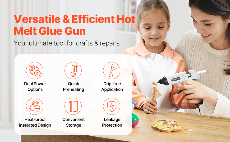Our efficient hot glue gun delivers 60W/100W dual power options and can preheat in just 3 minutes. It features a drip-free design and is easy to store and carry. Ideal for all your crafting and repair needs.