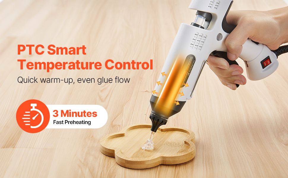 Thanks to the high-efficiency PTC thermistor, our craft glue gun achieves a quick 3-minute preheat. Meanwhile, its smart temperature control system ensures steady heat, boosting your workflow efficiency.