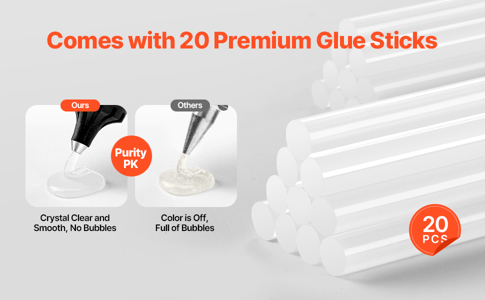 Our high temp glue gun comes with 20 premium glue sticks and is ready to use right out of the box. Moreover, it provides strong and long-lasting adhesion to support a variety of DIY and crafting tasks.