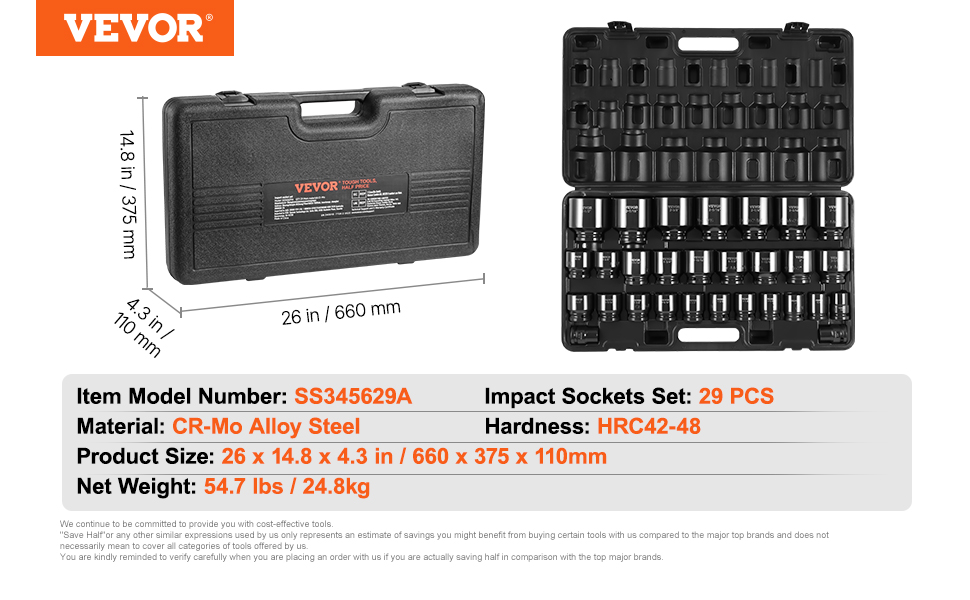 20 reviews for Impact Socket Set 3/4 Inches 29 Piece Impact Sockets, 6-Point Sockets, Rugged Construction, CR-M0, 3/4 Inches Drive Socket Set Impact SAE 3/4 inch – 2-1/2 inch, with a Storage Cage