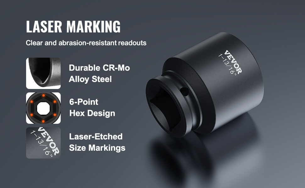 • 【SUPERIOR PERFORMANCE】- Whether you drive them with an impact wrench or by hand, these premium chrome vanadium sockets deliver superior performance. The impact socket set features a 6-point, high-torque design that contacts and grips the stronger flat sides of the nut or bolt head, not the weaker corners.