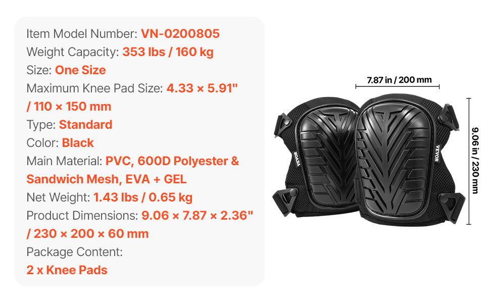 Maximum Knee Pad Size4.33 x 5.91″ / 110 x 150 mm