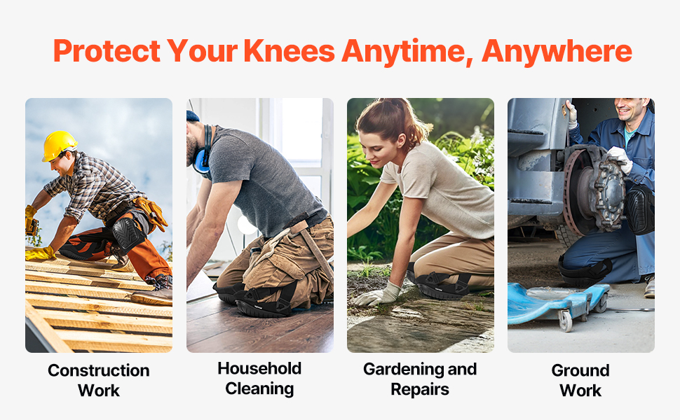 • Double Stability: Reinforced elastic straps and rivets ensure these work knee pads stay securely in place, preventing slipping and offering extra stability while you work.