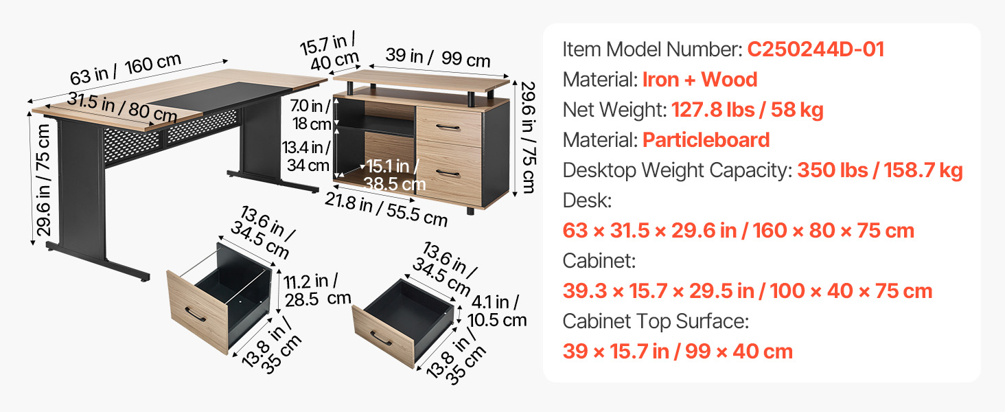 Coming with multiple drawers and storage compartments, this executive desk keeps files and office supplies organized. Made with durable particleboard, the desktop stays stable for long-term use, making it an ideal solution for your study or home office.