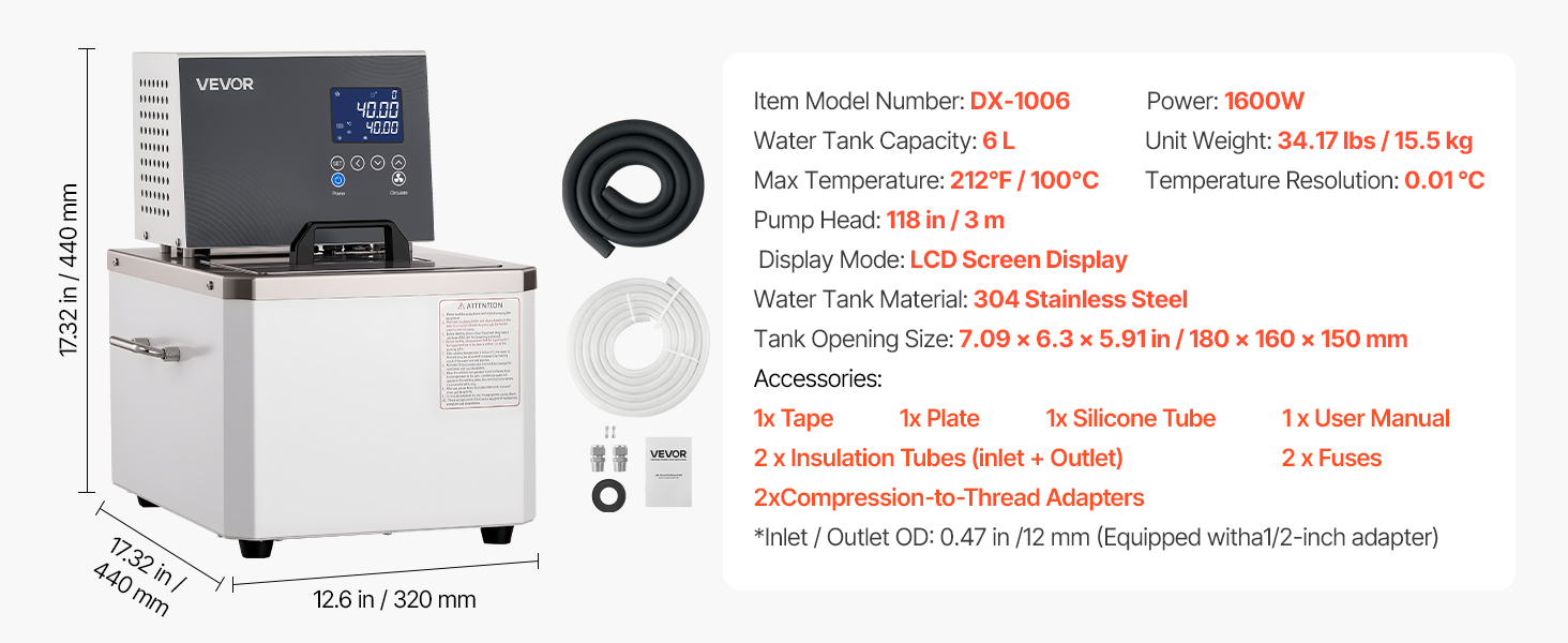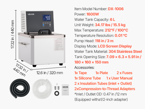 - Built to Last: This laboratory heating circulator features a thick 304 stainless steel top and inner chamber, designed for easy cleaning. The compression-to-thread adapter supports multiple pipe types and is compatible with corrugated tubes for high-temperature applications.