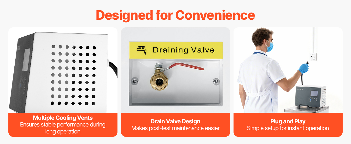 Our laboratory heating circulator is designed with everyday lab convenience in mind — quick drainage and instant setup keep your workflow smooth and efficient.