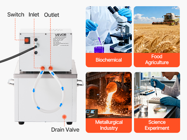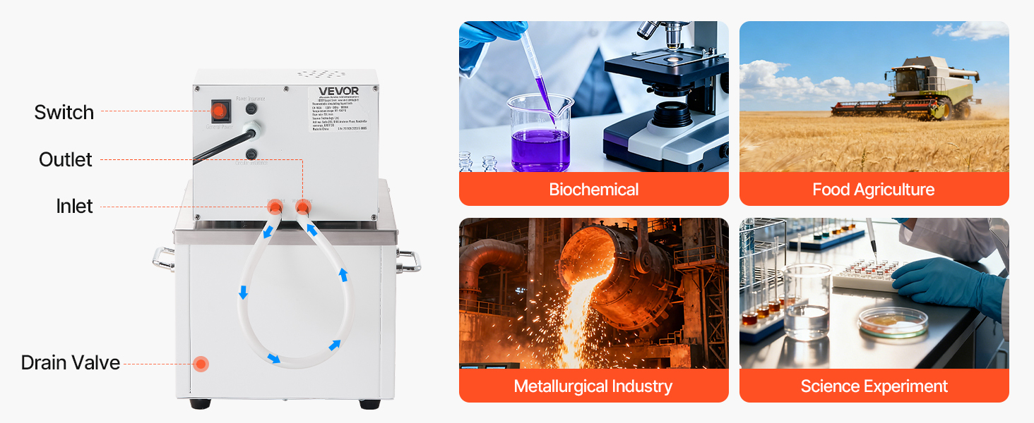 - Versatile Use: The pure copper motor operates quietly and ensures stable circulation for uniform heating. This high-temperature circulator is suitable for biological and physical science applications, including biotechnology, food processing, metallurgy, and more.