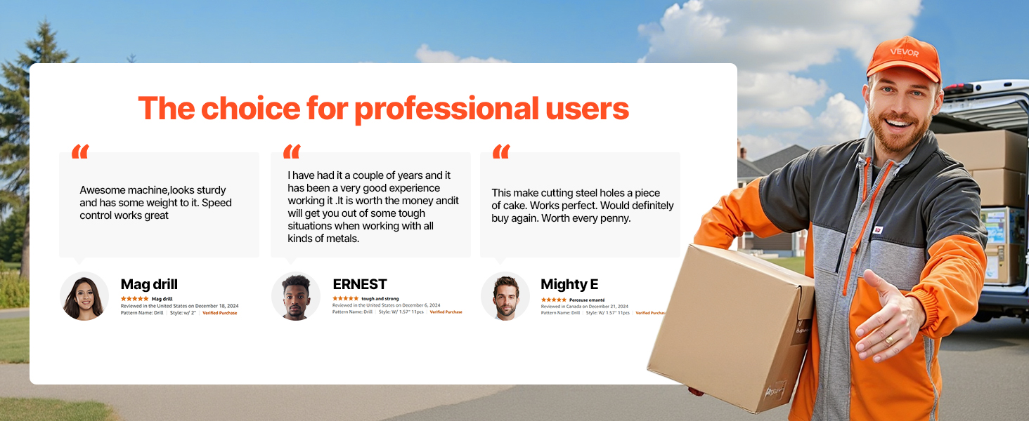 The drill works well and has decent power. When I fist tried to use it, the rotation was reversed from the switch position. I called I sent an email to Vevor and they send me directions on how to correct the issue. Great customer service. The other issue was the coring bits were not the 50 mm as described. But, the bits that came with work great. Overall, I’m happy with it.