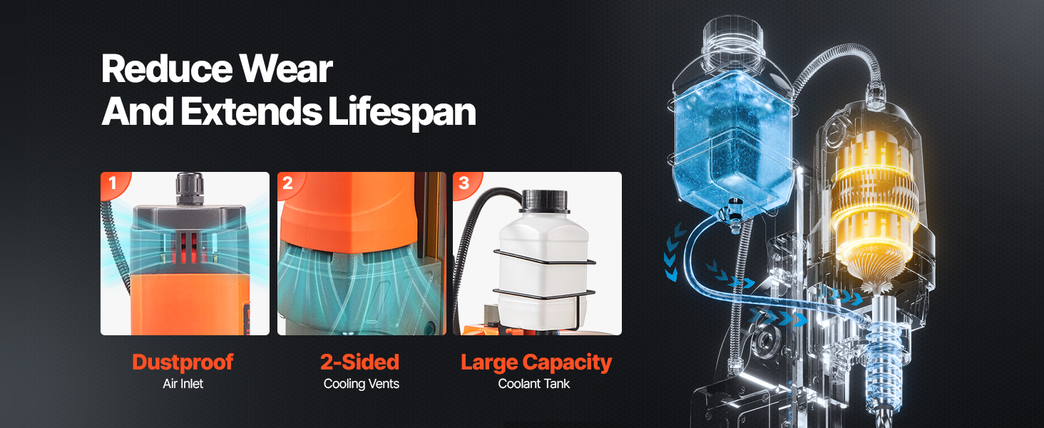 - Security and Durability: Your safety is paramount. The integrated overload protection features ensure operational integrity. The cooling system enables rapid heat dissipation, safeguarding operators from sudden power surges and elevated temperatures during drilling. Additionally, the premium alloy guide rail offers corrosion and wear resistance, significantly extending the device’s service life.